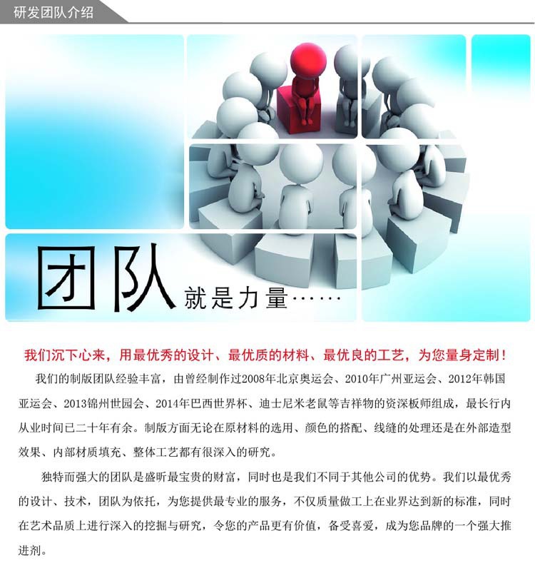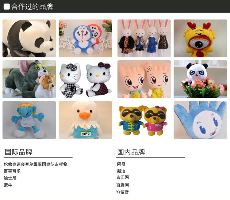 深圳市童真玩具禮品有限公司是專業定做毛絨玩具 電子玩具 汽車用品 糖膠玩具 箱包 錢包 抱枕 抱枕被的生產廠家 專業開發和設計 本公司擁有一流的團隊,一流的設計師,一流的生產能力,為廣大外貿公司,禮品公司,連鎖酒店,大型超市,活動促銷展......提供毛絨玩具,母嬰,家居等周邊禮品,訂單生產,誠信經營!歡迎各界朋友蒞臨參觀指導和業務洽談。 |