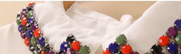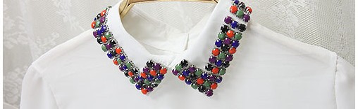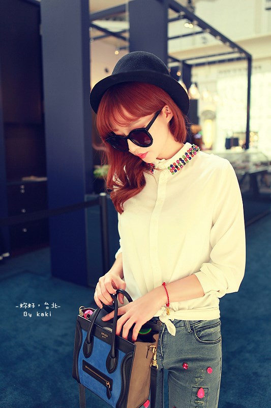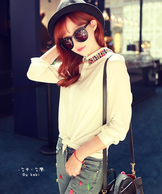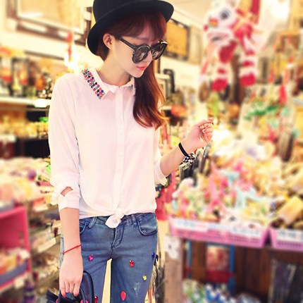 KAKI同款娃娃領襯衫糖果色彩鉆長袖雪紡衫襯衣213