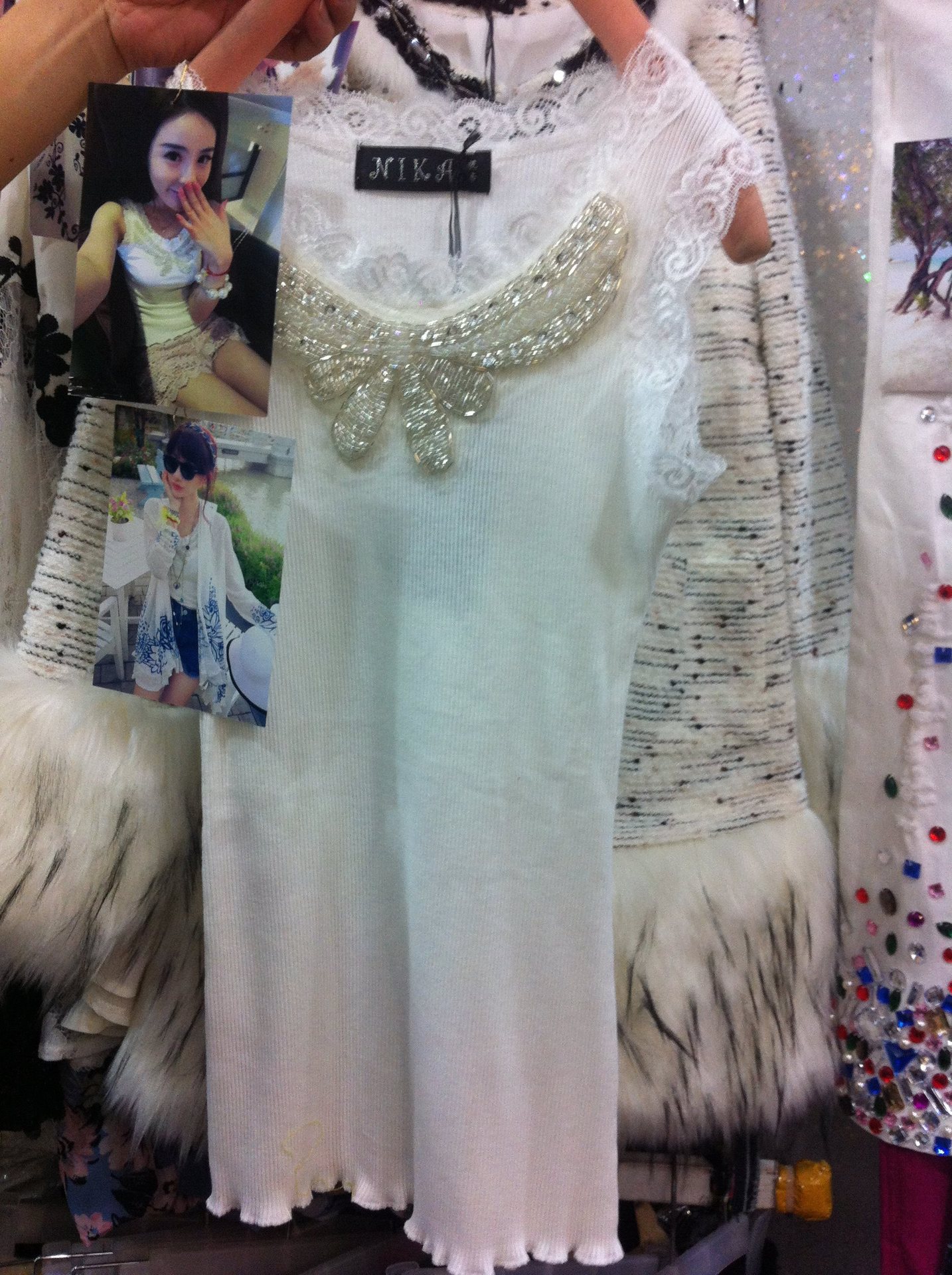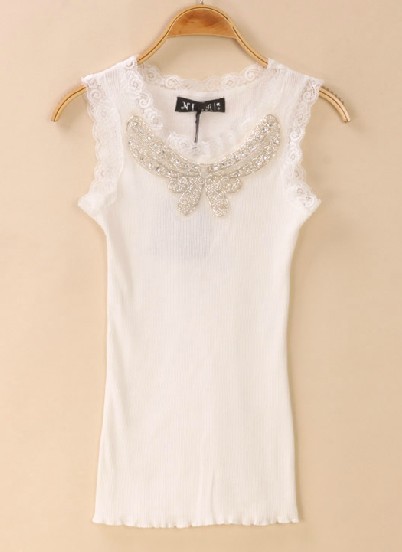 KAKI ASUKA秀奢華手工釘珠亮片蕾絲背心吊帶打底背心 0104