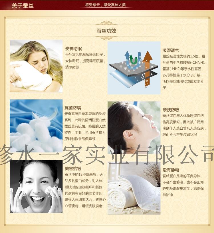3、蠶絲被保存時包裝袋不宜太緊,勿重壓,以防變形。