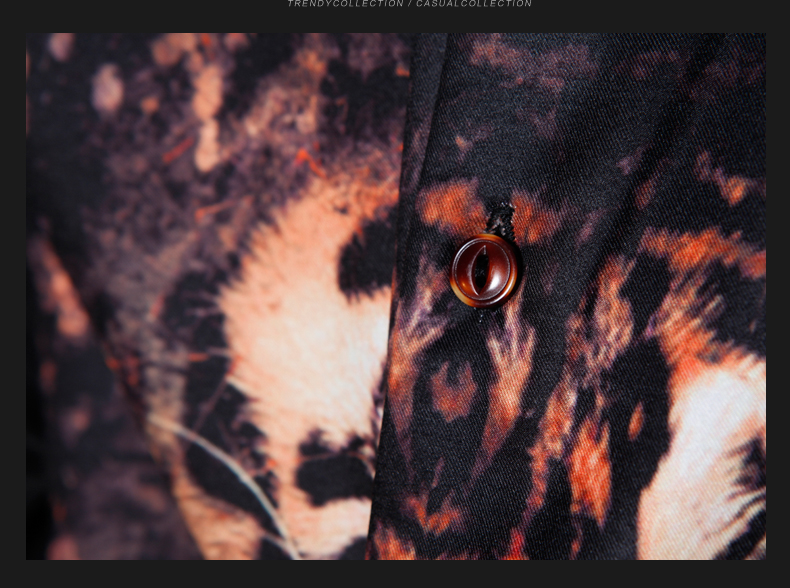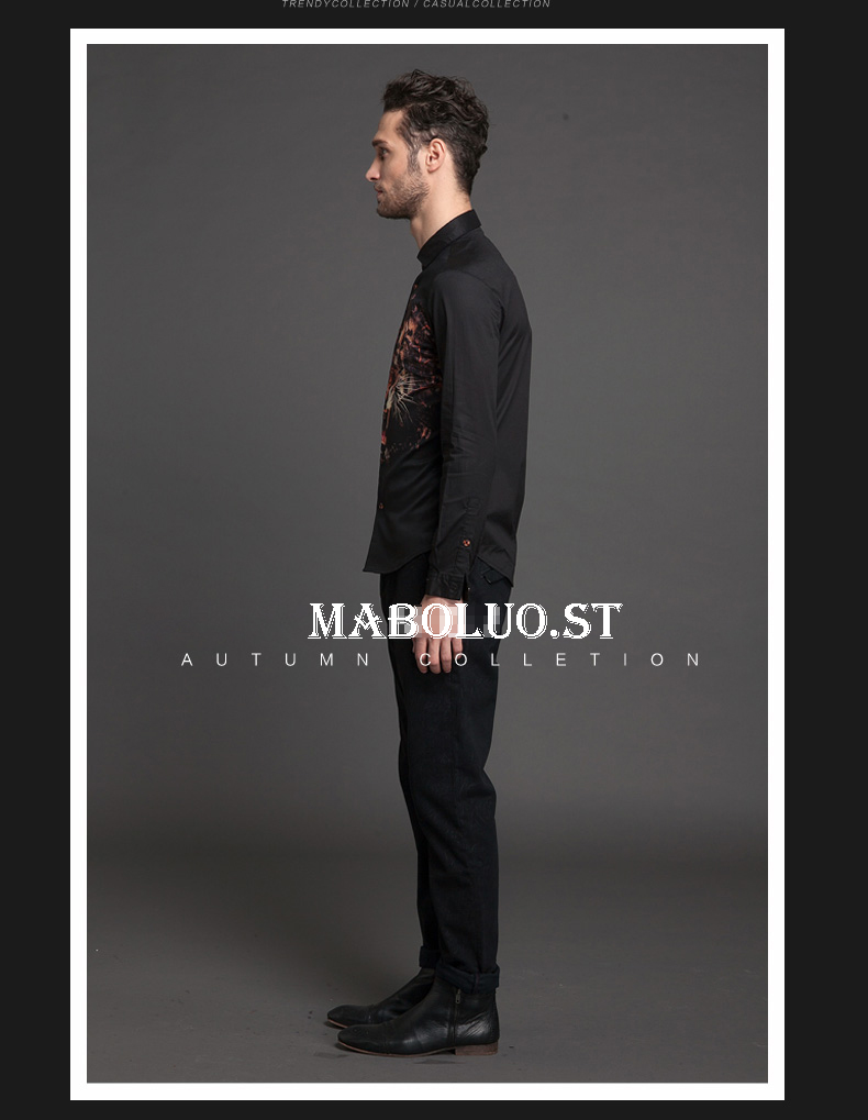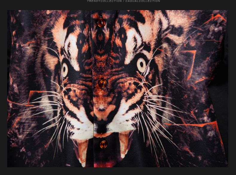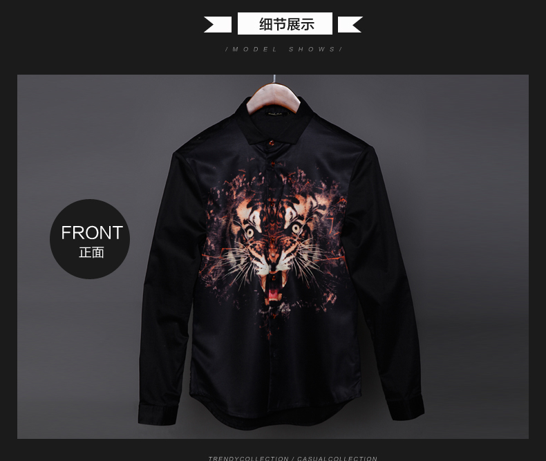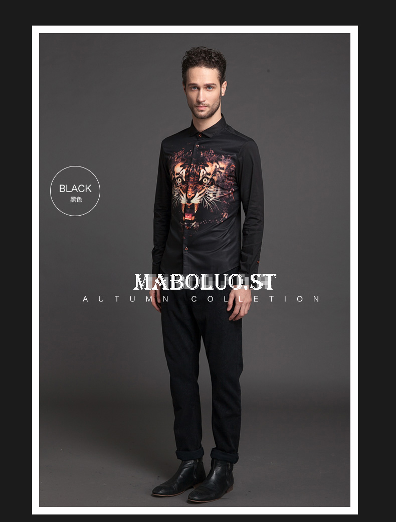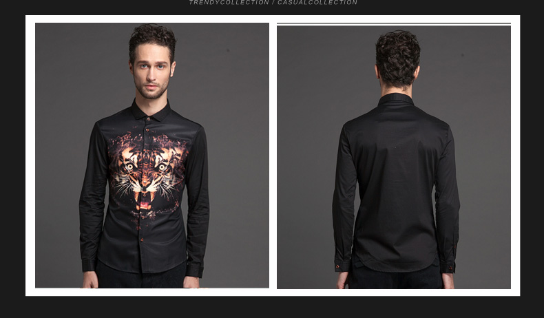 2015新款男士襯衫 虎頭印花襯衫 男士潮流修身休閑印花長袖襯衫