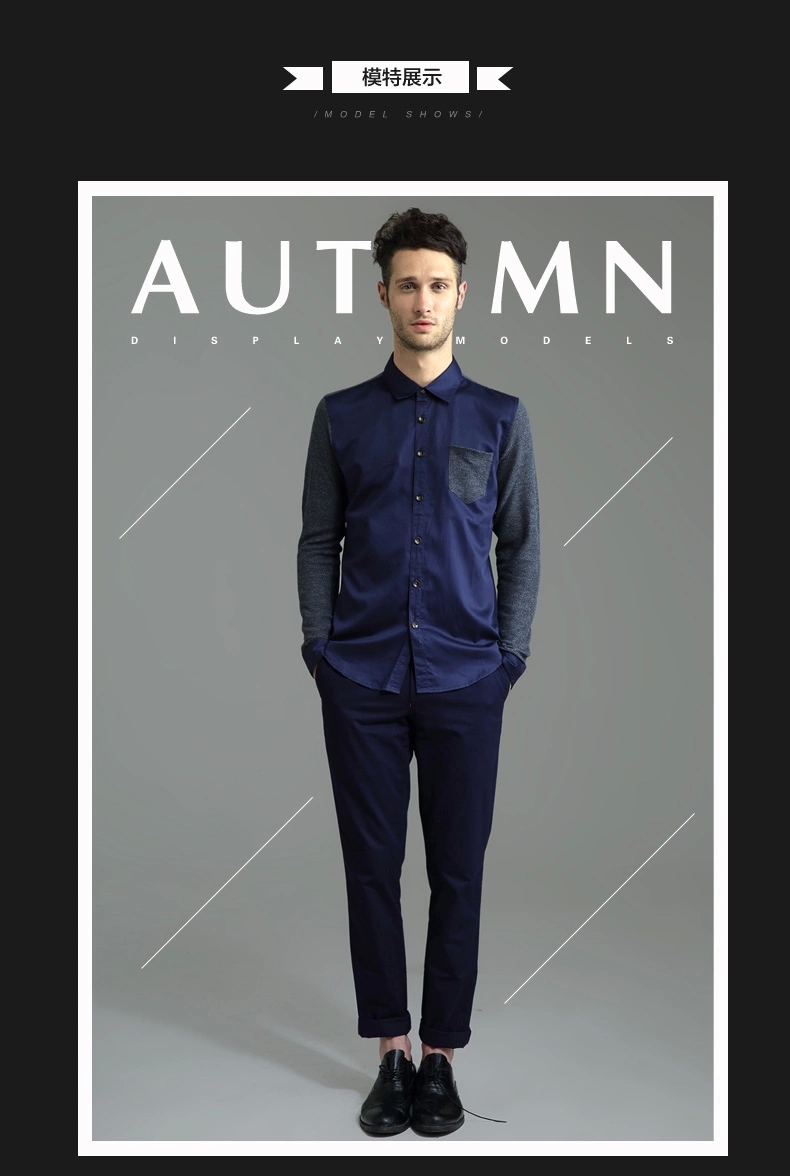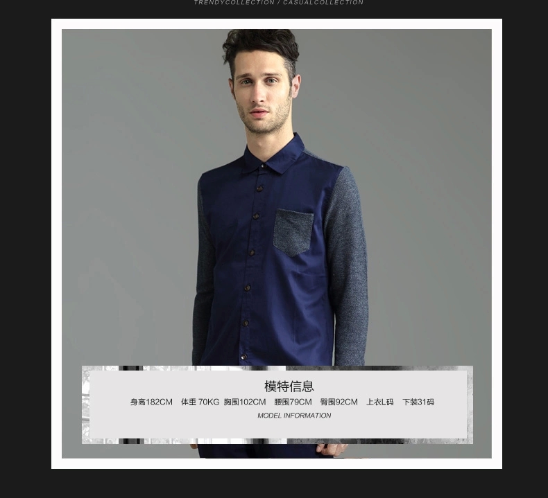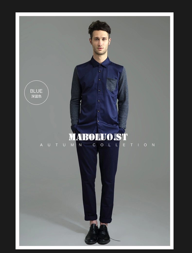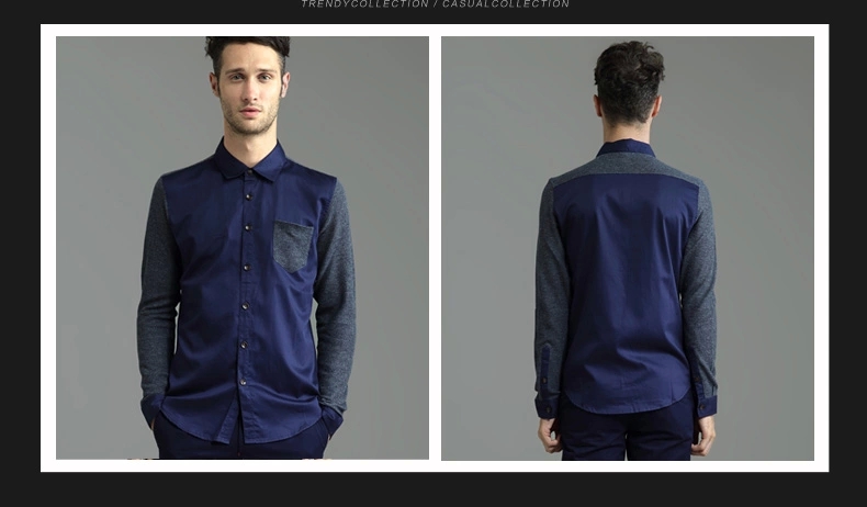 2015年春季原創針織襯衫拼接長袖襯衫 新款純色拼接襯衫韓版修身