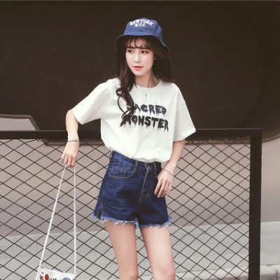 2016**爆款&實拍 休閑帥氣流蘇邊寬松牛仔短褲 女