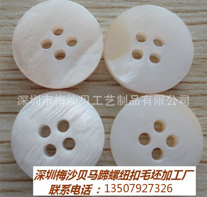 在印尼孟加錫島(Makassar)有專門的開坯工廠,當地采購原料,月開坯300萬粒,粗坯進口到深圳寶安工廠進行磨鏟,挑選,修邊,定型等工序加工。產品規格14L~36L,厚度1.5mm~5.0mm,青底紅底同價。工廠采用韓國進口貝殼紐扣機器,由從事紐扣行業近20年的**師傅帶隊,我們用心做好坯,認真對待每一位客戶,每一個訂單。也因此受到國內浙江,廣東,青島等主要紐扣毛坯市場的青睞。我們保證可以用**低的價格提供**優質的馬蹄螺紐扣毛坯,保質保量,按期交貨。