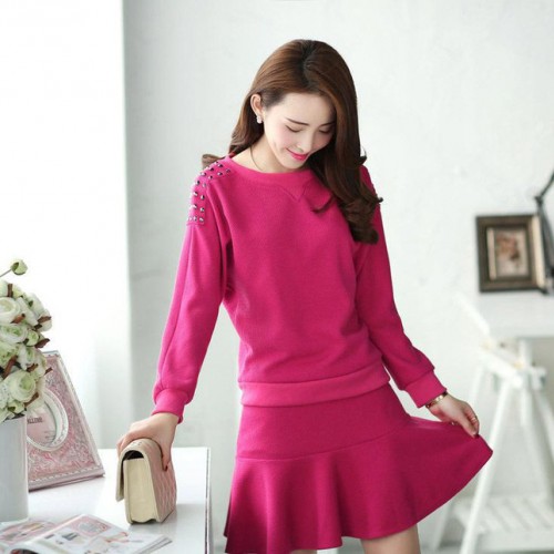 2015春季新款女裝韓版圓領(lǐng)長袖衛(wèi)衣+短褲套裝休閑兩件套YJ8792
