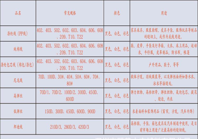 深圳市明芳內衣**有限公司成立于1997年,是一家專業縫紉線制造商,公司生產的各種滌綸線、尼龍線、包芯線、全棉線、特品線、彈力線等。深受廣大客戶好評。公司堅持以**,價格合理,服務快捷”的經營理念為服務宗旨。公司現入駐深圳松崗政府特許環保工業園內,擁有一系列國內先進的專業制線設備,集生產、染色、運輸等系列完善服務于一體。實力雄厚,月產量達85噸以上,大小客戶近百家,分布在服裝、玩具、運動器材、帽業、電(線)纜、皮革制品等行業,品種齊全,應用較為廣泛,并引進專業配色技術人員,精良的工藝,品質及顏色均達到國際標準,為樹立**的企業,做行業強者打下堅實基礎,以確保滿足新形勢下客戶對產品更高的需求。