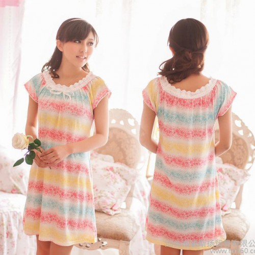 睡衣批發 蝴蝶結條紋休閑女士睡衣家居服睡裙 L6022