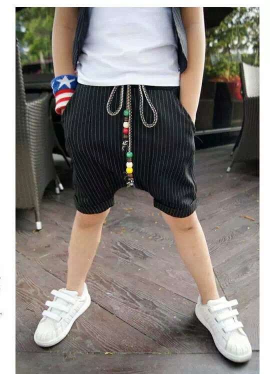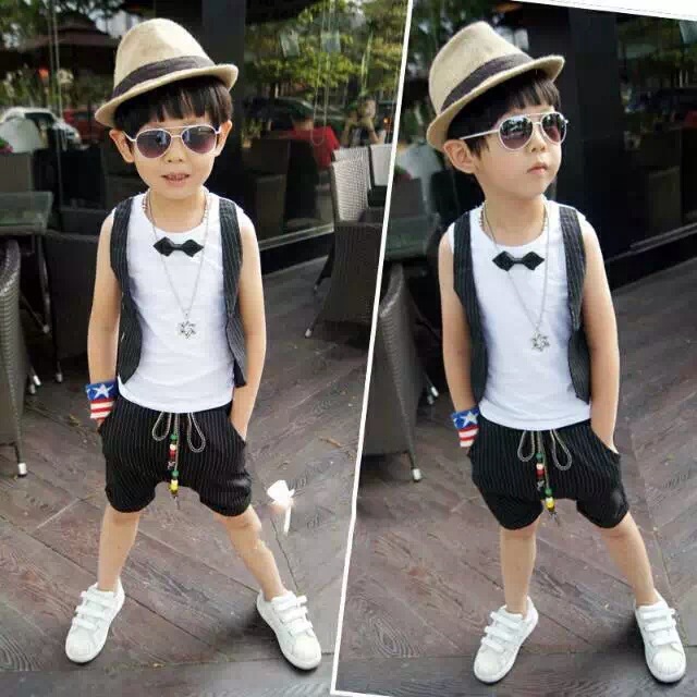 2015夏裝新品男女童潮港風范兒假兩件領結T+哈倫褲套裝