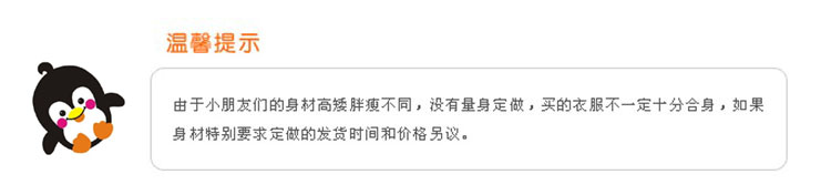 動物演出服裝選用金絲絨面料制作,適合身高110--120厘米之間即3-6歲的幼兒穿戴(注:里面以穿薄內衣的為佳,不然會直接影響效果),除以上說明的身高外都需要定做,家長或老師要量好孩子的身高。注:網上服裝價格是110厘米的價格,身高超過110厘米的每增高10厘米需加6元,如果單買衣服的需另外購買鞋子每雙6元。