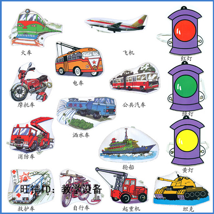 紅燈、黃燈、綠燈、灑水車、輪船、汽車**、自行車、消防車、救護(hù)車、電車、吊車、坦克、火車、飛機(jī)