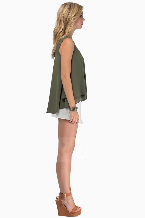 速賣通EBAY熱賣 露肓性感雪紡雙層背心女 無袖吊帶衫雪紡衫