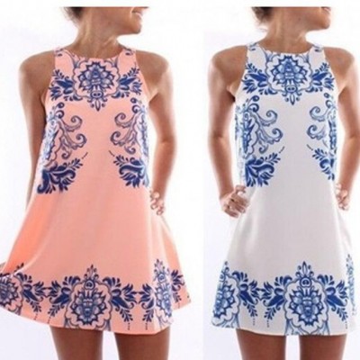 速賣通Ebay外貿(mào)歐美女士無袖圓領(lǐng)印花雪紡連衣裙6025