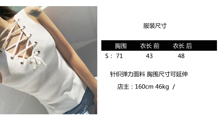 春夏新品韓版性感前后V領綁帶短款針織背心套頭針打底衫692