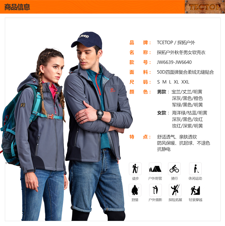 戶外軟殼沖鋒衣男女秋冬裝夾克加厚保暖抓絨衛衣運動防風防水外套