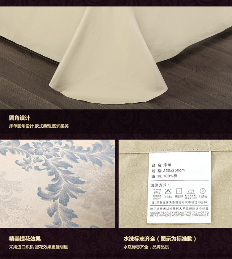 床單:250X270CMX1 被套:220X240CMX1 枕套:48X74CMx2 (適合2.0床使用)