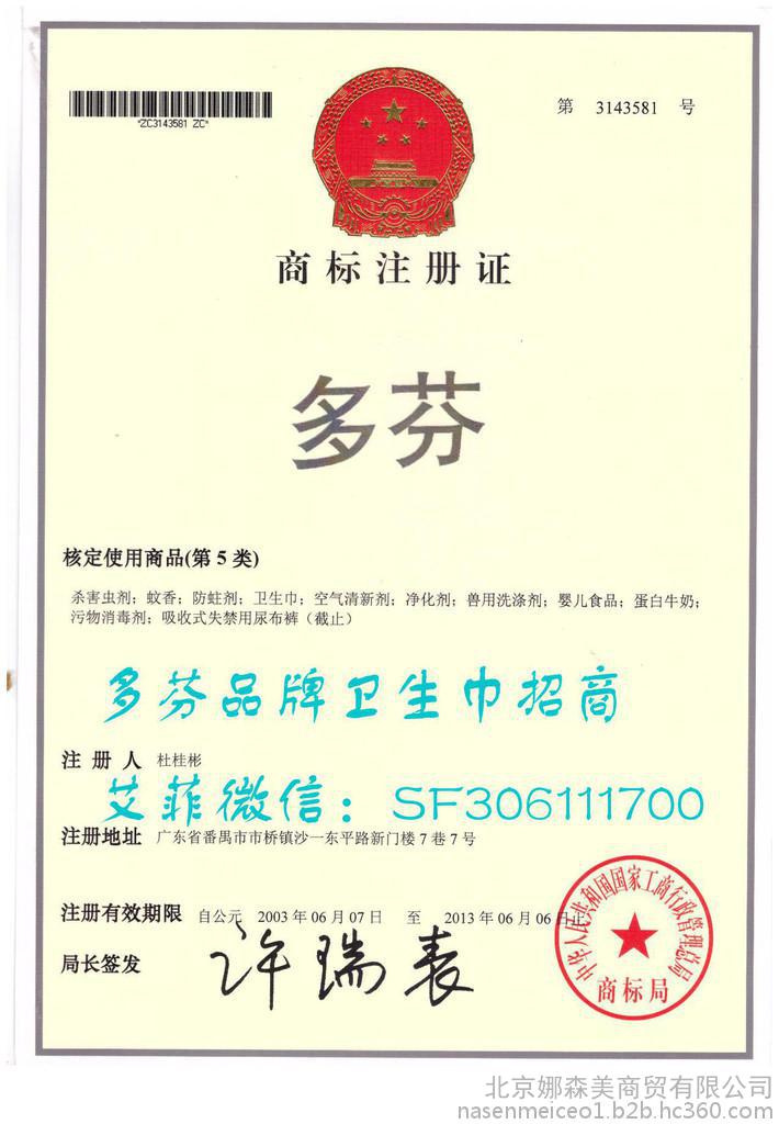 目前娜森美商貿有限公司主要經營多芬品牌衛生巾及面向全國招商