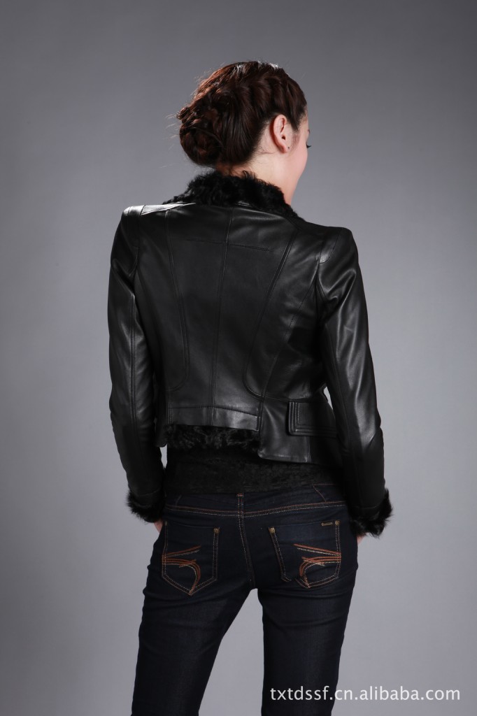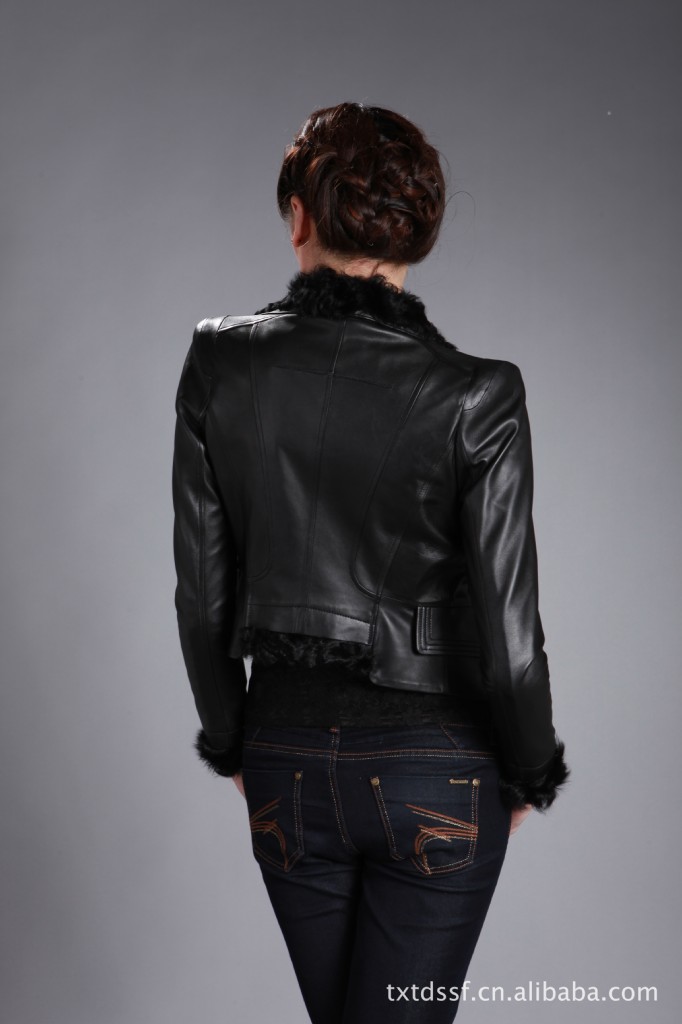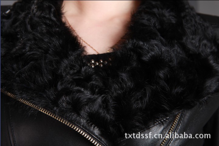 供應達人部落F12008海寧新款羊羔毛短款修身真皮皮衣