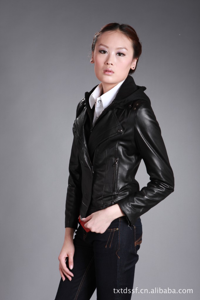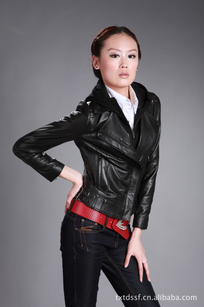 供應達人部落F12029秋款上新綿羊毛機車款女式真皮皮衣