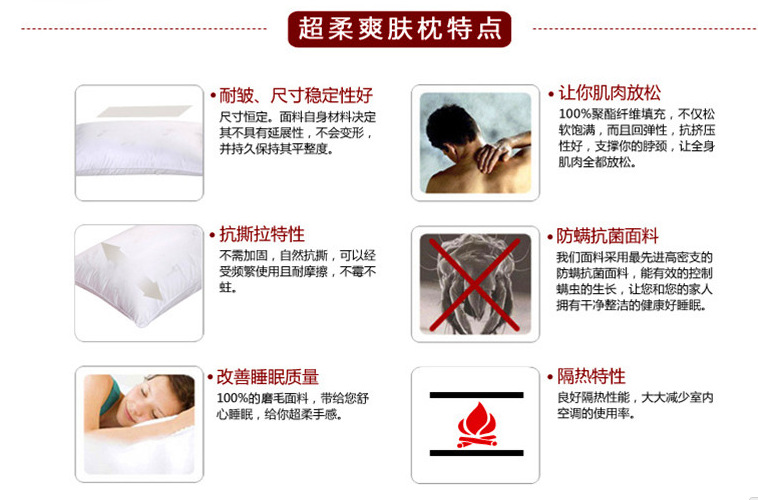 【描述】枕芯以九孔棉為主要原料絲,采用新工藝全手工精制而成,內胎不餅結,均勻柔和,透氣,排濕的優點還有安定神經的作用,不僅為預防失眠,更徹底消除白天積累的疲勞,增益健康。同時中空纖維的較高篷松度,讓你的隨時享受著高科技產品的舒逸。