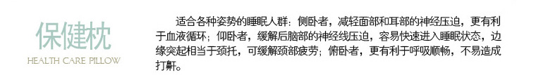 【注意事項】1、長期堅持每晚枕用,保健效果更佳;2、枕巾和枕套要常洗、曬、換;3.枕心不可洗不可暴曬,可晾干。