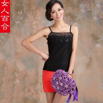 供應實拍D2003韓國新款女裝 春季修身打底衫批發特價純色蕾絲吊帶衫