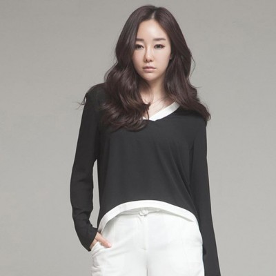 商品的領邊采用白色包邊,搭配黑色顯得時尚高雅。寬松設計適合胖MM,雪紡材料不沾身,切透氣。不規(guī)則下擺顯得簡約大氣。