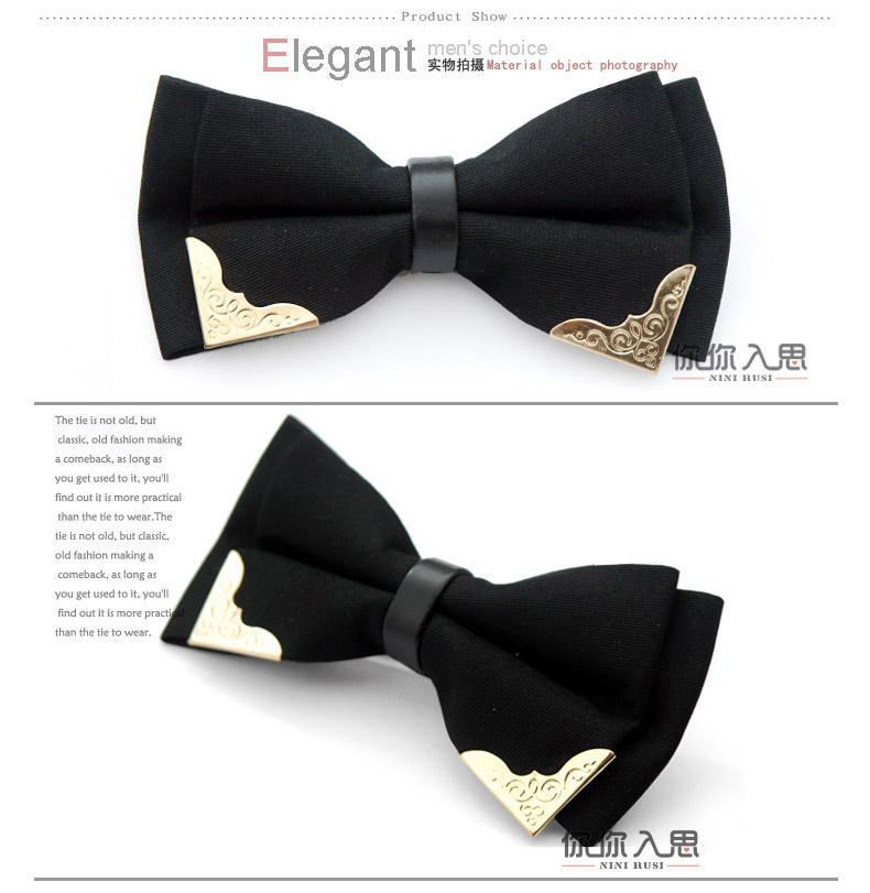 你你入思 黑色金屬男士領結 婚禮新郎伴郎正裝韓版潮男蝴蝶結領