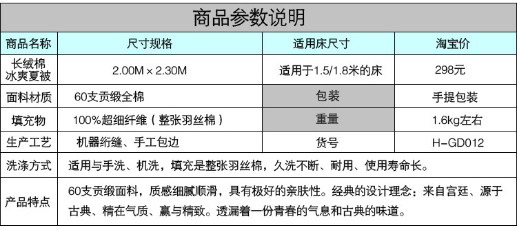 型號 | 貢緞夏被 |
