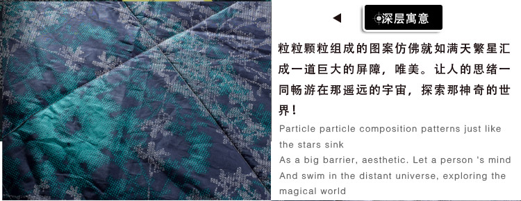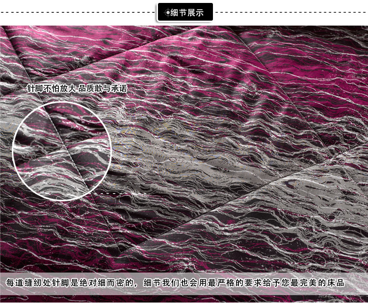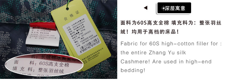 我們的填充物為:整張超細羽絲棉,手感柔軟,不變形,而不是普通的三維整張棉。顏色發暗,手感偏硬,時間久了容易從被面鉆出棉絲。