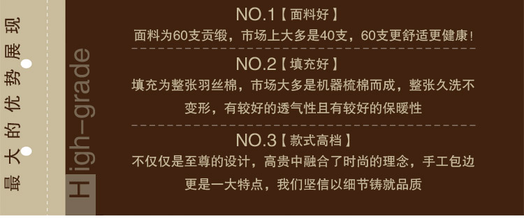 2:單品、單規格、單重量、滿一包貨以上(30條以上)支持貼牌定做,或者來樣加工(如果你有一款或者幾款被子很**,你可以直接把樣品寄給我們,我們**低可以幫你省2%到5%的成本)