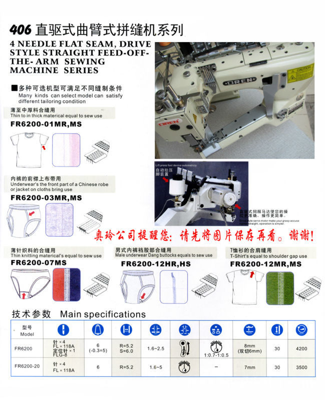 奧玲原裝四針六線,即ISO607線跡,由四根面線、一根底線和一根哈疏線組成。四針六線奉獻于獨有的高彈性、平坦且高強度的拼縫效果,筒型機座及本公司獨創的步履式壓腳,在拼縫高彈性面料及椴部過縫處更輕松,根據面料及用途的不同有各種規格的壓腳針位組零件對應單切式雙切式、還有配備連成一體的小型伺服馬達,追求高縫制品質和筒單操作性的新銳機型。其中,為了確保設備在使用過程中穩定保持最佳效果,為親們提高生產效率,創造價值最大化,更加經久耐用;該寶貝的核心組件都是由日本總廠生產提供,故親們對質量可以絕對放心的哦!【公司著重聲明:質量三包(3天包退、7天包換 、1年包用---回廠終身免費包修)讓您買的開心!用得放心!讓我們攜手打造極具影響力的工業縫紉機及配件交易平臺;共同構筑生產商與客戶的友誼橋梁!】