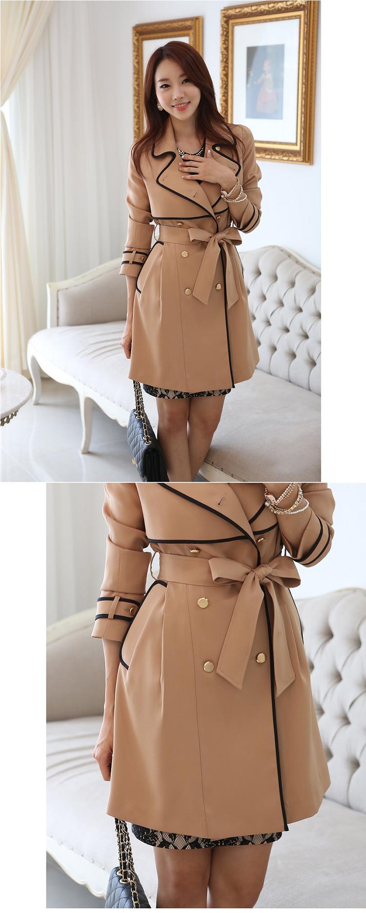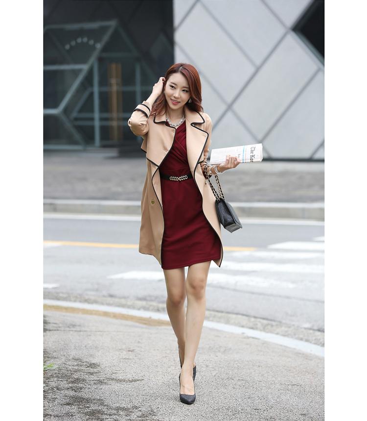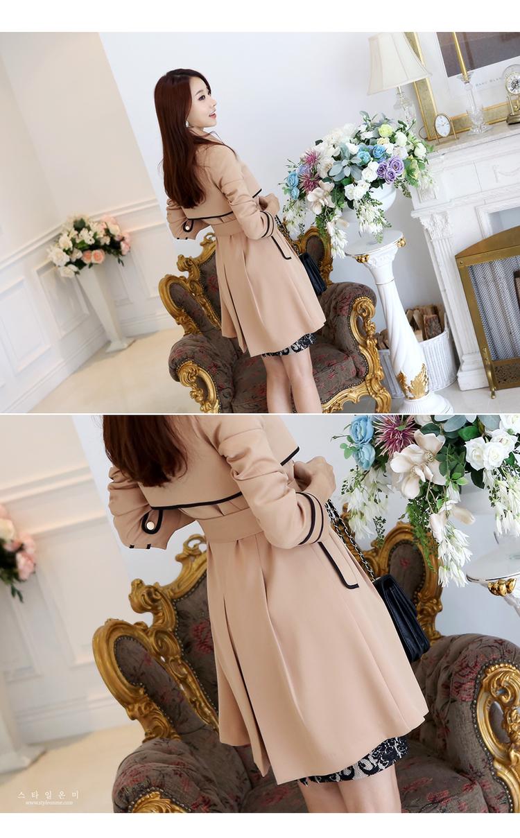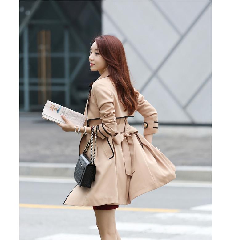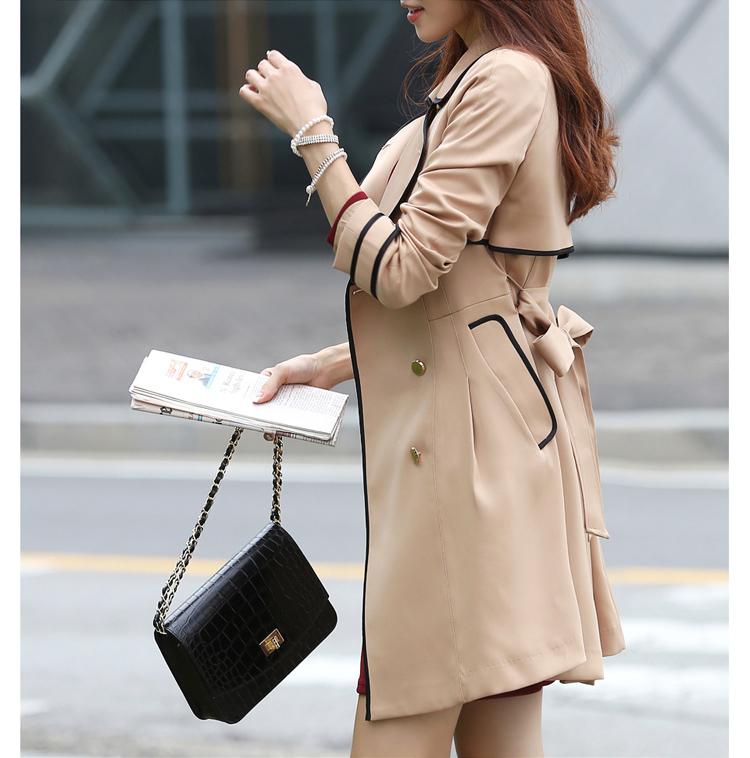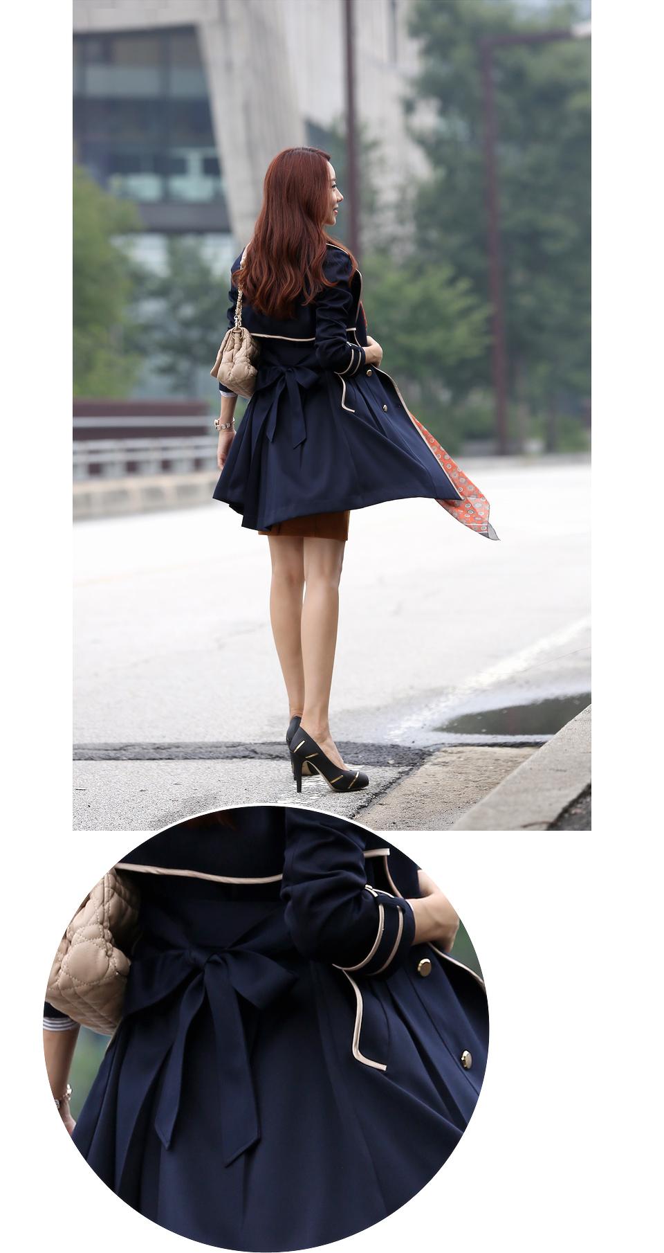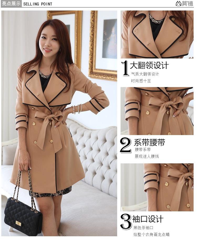 2013新款 韓版氣質修身秋冬風衣中長款系帶秋裝外套風衣女
