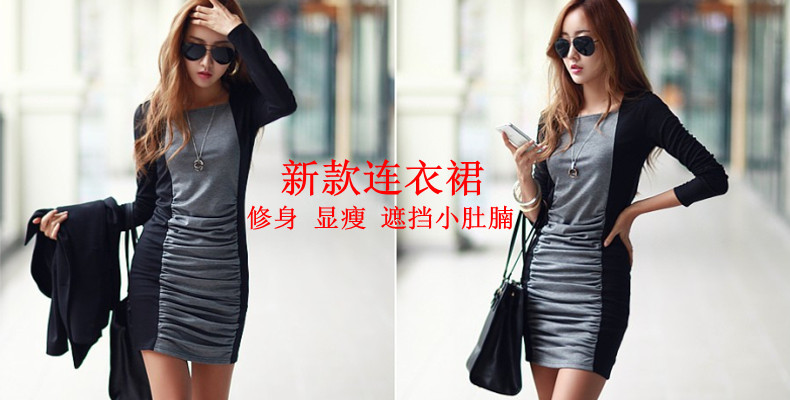 2013韓版氣質秋裝新款裙子秋冬款連衣裙新品大碼長袖打底裙 女