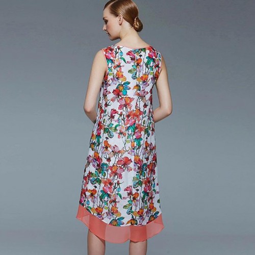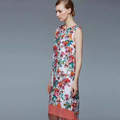 2015新款數碼印花A字裙無袖桑蠶絲連衣裙夏長裙女防曬直銷
