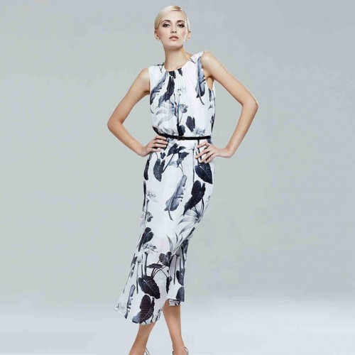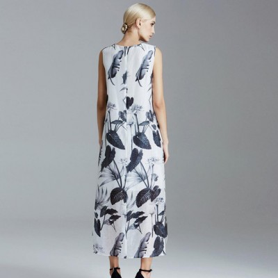 女裝2015新款夏裝歐美重磅真絲連衣裙桑蠶絲無袖印花長裙大碼