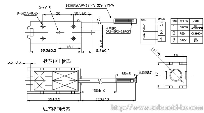 1.名稱型號(P/N):福建縫紉設備電磁鐵、紡織機械電磁鐵、吊目接針電磁鐵 BS-0735N2.標準測試條件(TEST):