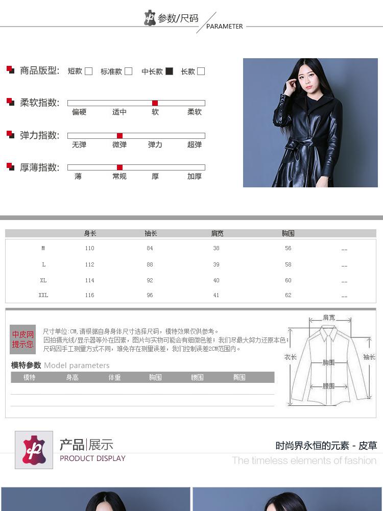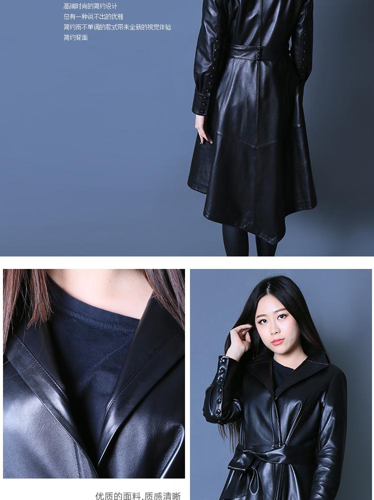 京豹 單皮衣女 真皮 綿羊皮超長款大翻領(lǐng)潮流女裝皮衣583