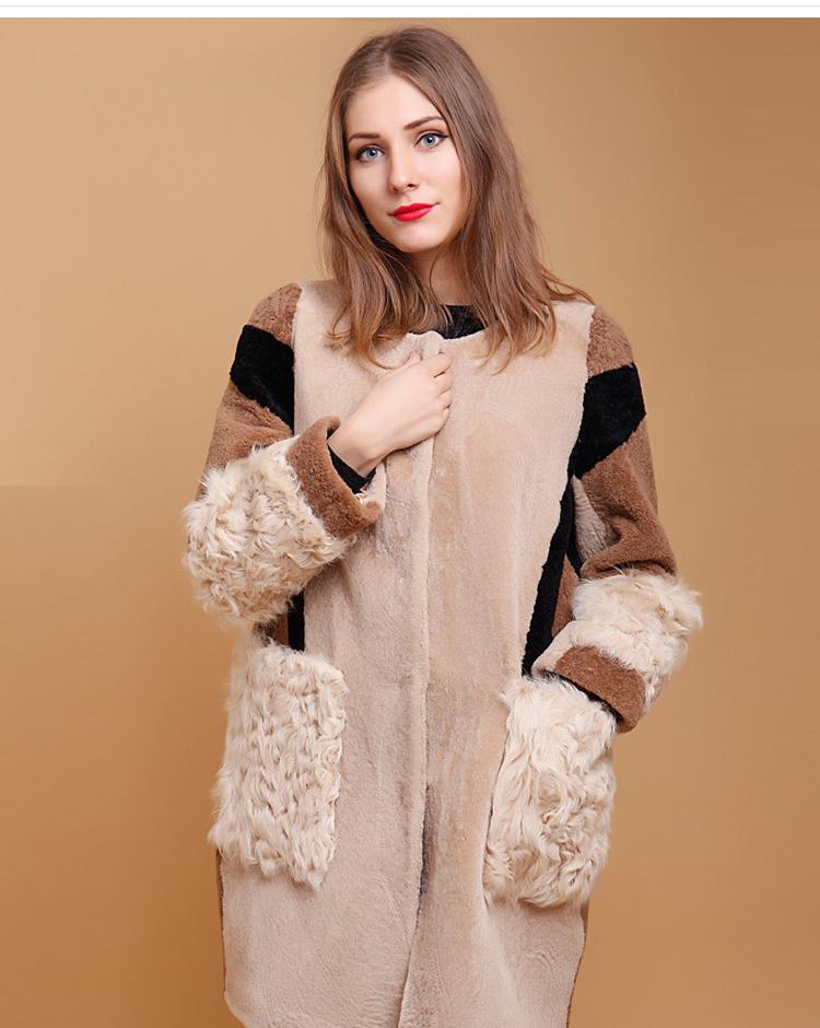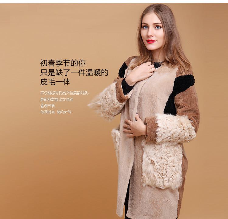 KC皮草春季皮毛一體女中長款外套皮衣連帽大衣C0156439
