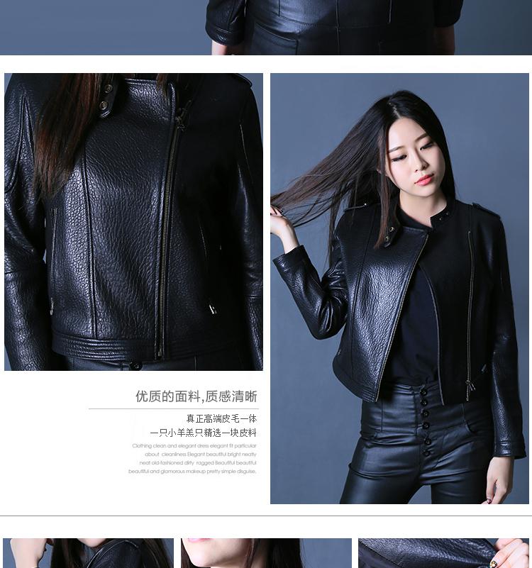 京豹 2016年立領進口綿羊皮休閑女款皮衣509