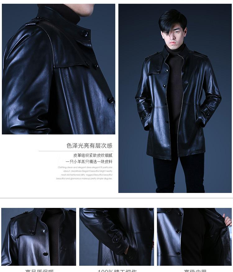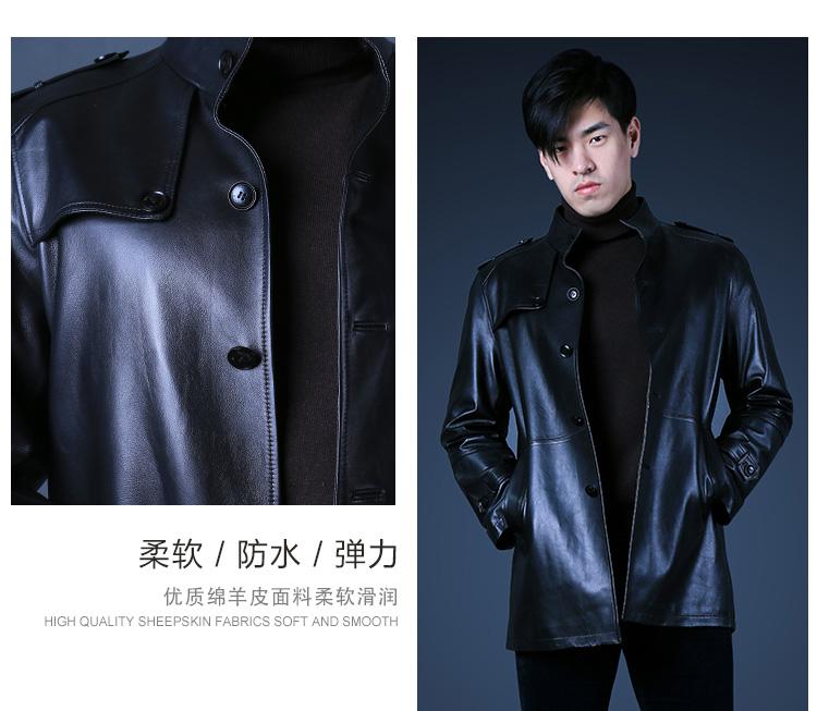 京豹 2016年風衣款立領軍裝休閑男款皮衣586