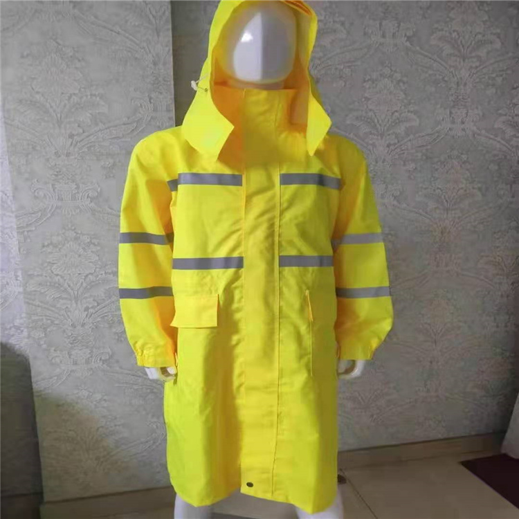 面料達到30KPA一小時不透水,配片色差大于3.0級別,合縫扯斷強度大于3.8knm。本品是 法絲絨防雨面料,加PU環保透氣透濕防水涂層,暗藏式大蓋帽子,上下身分體套裝,防盜防水口袋,休閑款式;適合交通、電業、戶外作業 釣魚 騎電動車自行車等各種行業。型號人性化設計,從小到大,根據標準身高體重腰圍量身配備。