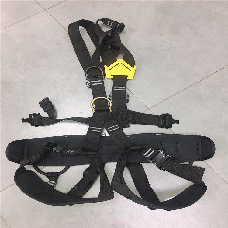 配有胸前兩個D型環用于人員上升或掛至安全鉤,兩腰側D型環用于工作定位或平臺限位作業,后背單D型環用于連接減震繩。