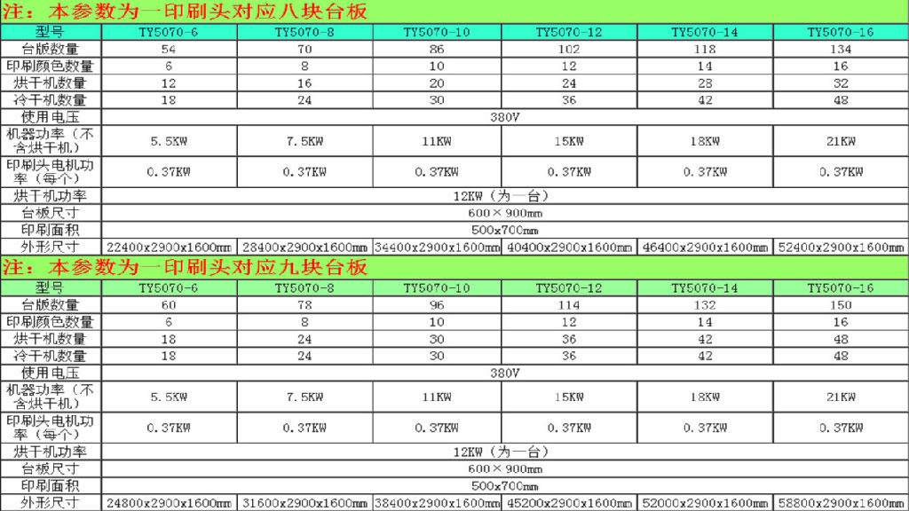 TY系列印花機所具備的優勢擴展性:特有的并行模塊組合設計,可根據用戶的要求在原有的機器上任意添加印刷頭。比如現在是一臺6色機,因為客戶的業務情況需要 8個套色。只要與我們聯系**可以在該機上再增2個印刷頭,這樣用戶**無需再購買一臺8色機,從而保證了用戶投資的安全性。 整臺設備的驅動系統采用鏈軌和導輪的方式,更保證整臺設備的高強度與穩定性,使印刷產品的質量和速度更高更快。 占地面積小由于整機的寬度固定,無論印刷頭如何增減都只是長度上的變化,能隨意在直徑不夠的廠房安裝使用,因為它可以安裝在廠房的柱子周圍,使柱子巧妙地成為機器中間的一部分。