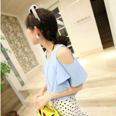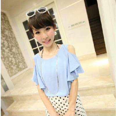 2013新款 韓版荷葉袖露肩雪紡衫 雪紡上衣 代理 一件代發