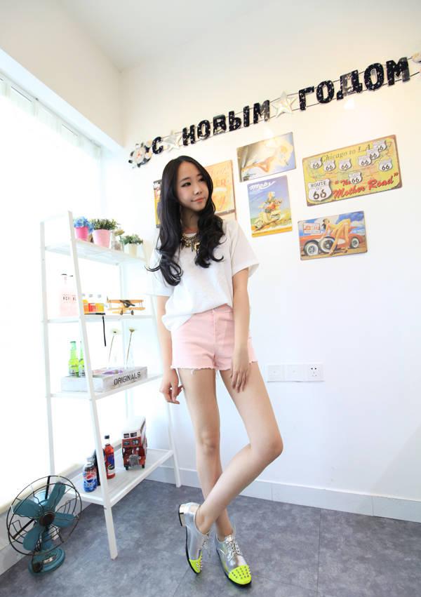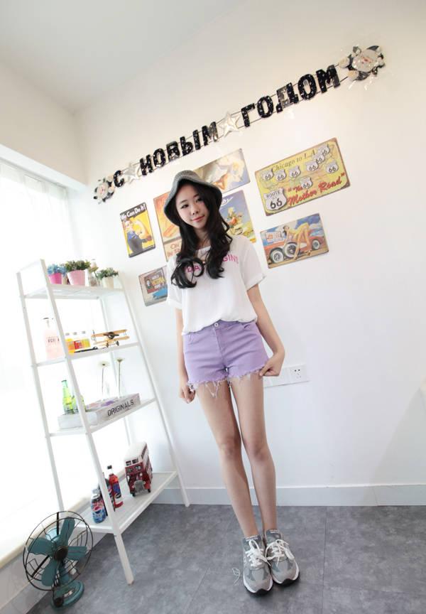 夏天必備的小熱褲,粉嫩嫩的顏色,很好搭