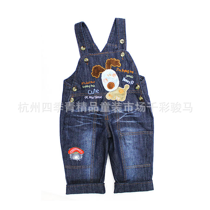 童裝批發 春秋新款嬰幼兒服裝 童褲 卡通小狗牛仔背帶褲 1-3歲¥