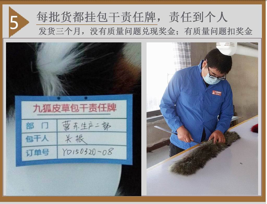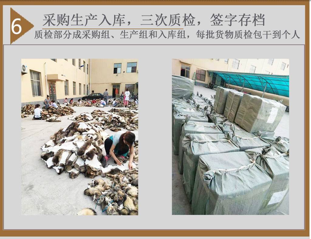 我們**道質檢的主要任務**是挑揀出這2張下等皮子,再把剩余的8張分成2個等級,并且責任到人,質檢結束后皮子打上質檢員代號,出現問題能責任到人。(——狐貍毛領價格貉子毛領大衣毛領子水貂毛領——)