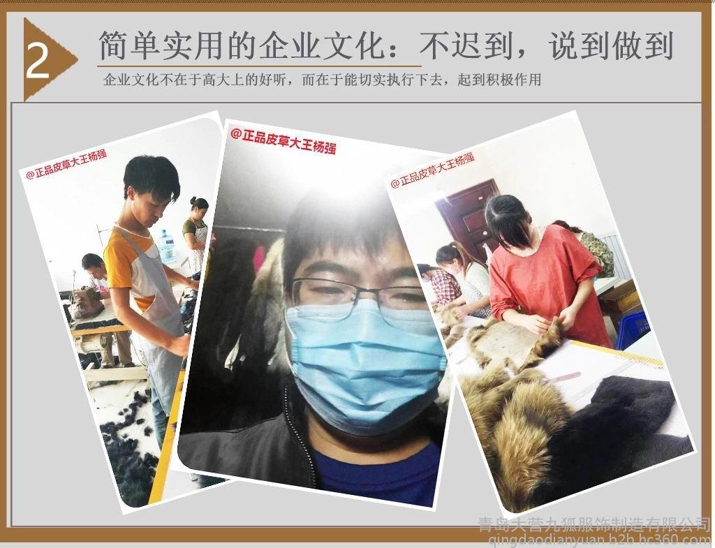 所以皮草行業(yè),工人的穩(wěn)定性更大程度上決定了皮草的價格和品質(zhì)。工資低的話,工人流動大,品質(zhì)不能保證,效率低和殘次品高,看似成本降低實則升高,并且產(chǎn)品品質(zhì)不能保證。公司從大局考慮,我們的小刀工工資都是比兄弟廠家高30%,并且其他待遇樣樣齊全,工人有什么訴求,我們會盡量滿足。(——**毛領(lǐng)價格貉子毛領(lǐng)大衣毛領(lǐng)子水貂毛領(lǐng)——)