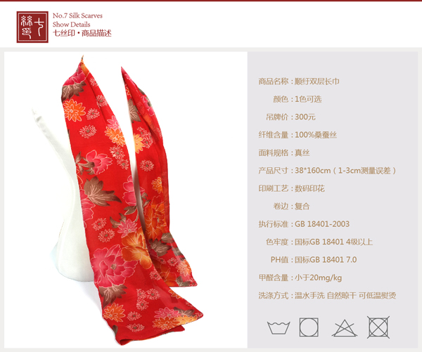 七絲印 真絲雙面長(zhǎng)巾 沙灘款蠶絲春秋女紅色圍巾絲巾學(xué)生歐美