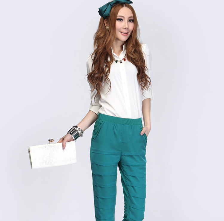 供應纖雨戀83396纖雨戀83396雪紡拼接褶皺中褲
